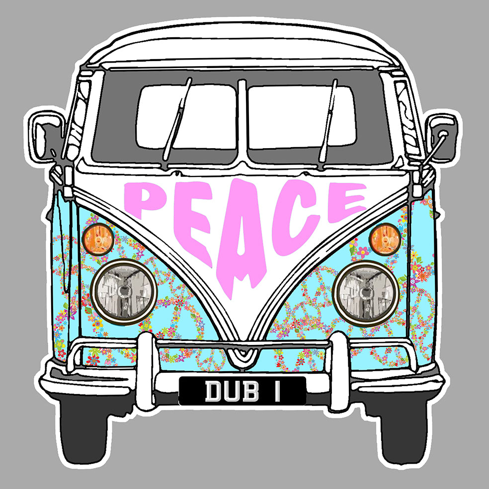 PEACE AND LOVE COMBI VW DUB COX HIPPIE AMOUR AUTOCOLLANT STICKER AUTO PC118