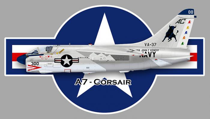 STICKER AVION DE COMBAT AMERICAIN A7 CORSAIR NAVY USA AUTOCOLLANT AV014