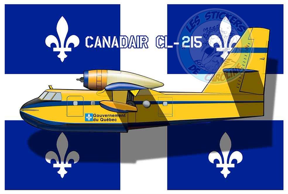 STICKER CANADAIR CL 215 CANADA GOUVERNEMENT DU QUEBEC POMPIERS AUTOCOLLANT AVION PE123