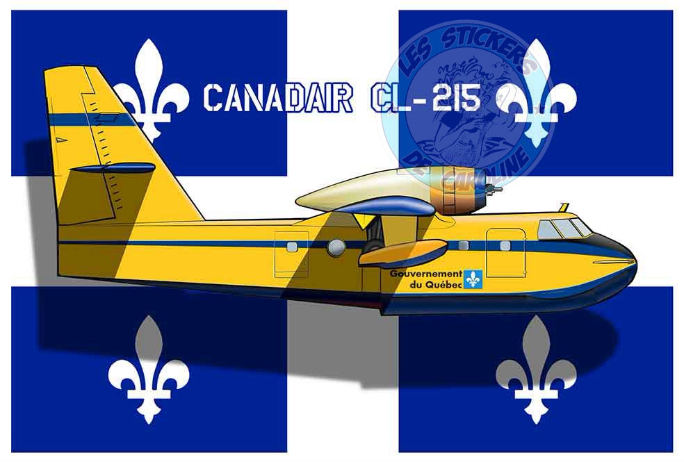 STICKER CANADAIR CL 215 CANADA GOUVERNEMENT DU QUEBEC POMPIERS AUTOCOLLANT AVION PE121