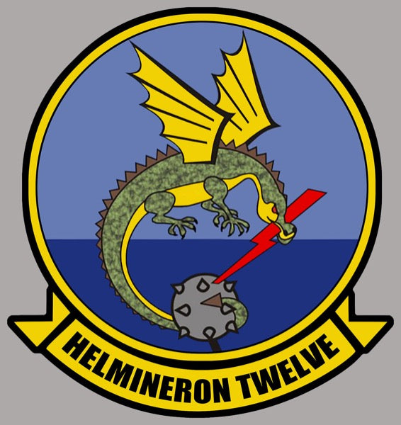 STICKER HM-12 HELMINERON TWELVE Helicopter Mine Countermeasures Squadron 12 badge blason US NAVY sea dragons HZ013