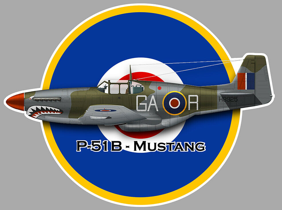 STICKER AVION MUSTANG P-51 B CHASSEUR BOMBARDIER ANGLAIS 1940 COCARDE AV013