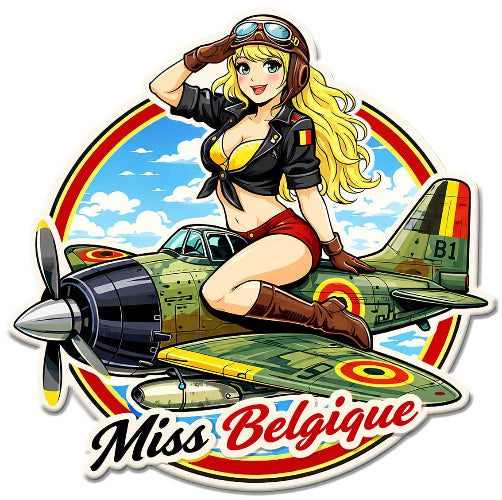 STICKER PINUP BELGE AVIATION PILOTE MISS BELGIQUE PZ117
