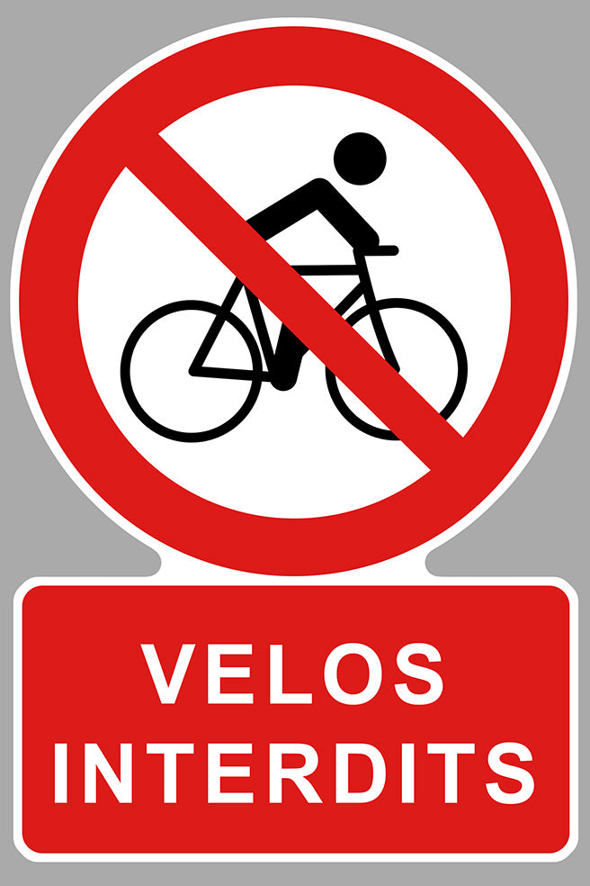 AUTOCOLLANT VELOS INTERDITS CAMPING STOP PANNEAU STICKER CAM215