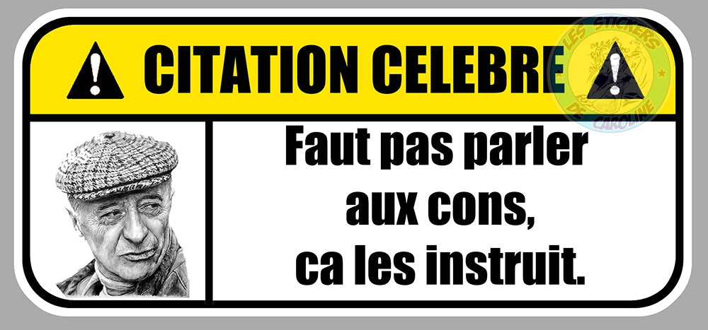 STICKER CITATION CELEBRE AUDIARD IL NE FAUT PAS PARLER AUX CONS ÇA LES INSTRUIT. AUTOCOLLANT HUMOUR CE018