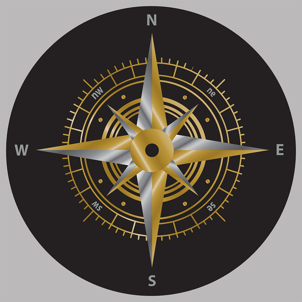 STICKER ROSE DES VENTS BOUSSOLE SUR ROND NOIR AUTOCOLLANT RZ078