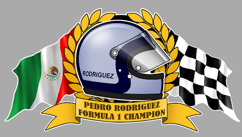 STICKER Pedro Rodriguez CASQUE F1 drapeau Mexique Lauriers Damiers RACING COMPETITION FORMULE 1 HA166