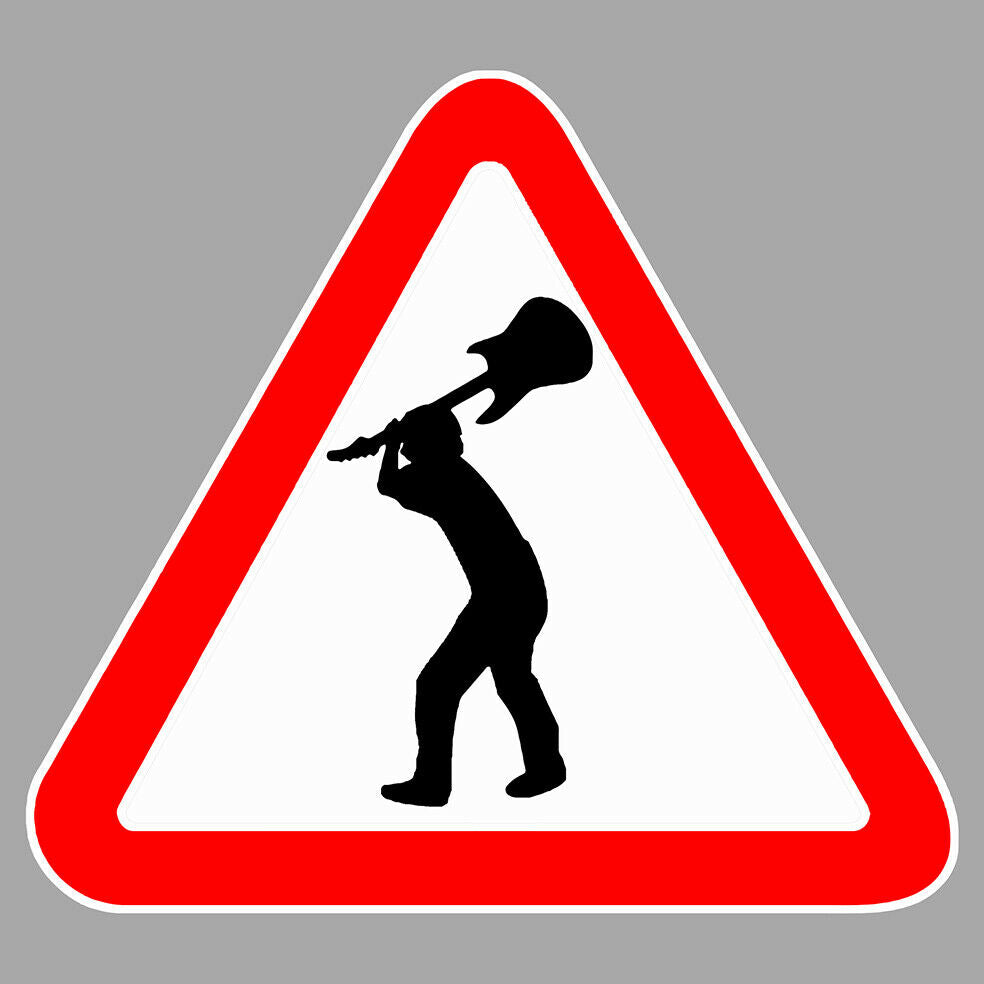 STICKER ATTENTION GUITARISTE FOU ROCK & ROLL GIBSON AUTOCOLLANT GA077