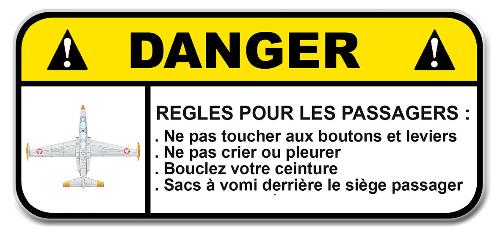STICKER PANNEAU DANGER AVION régles à savoir pour les passagers en avion AUTOCOLLANT DZ021