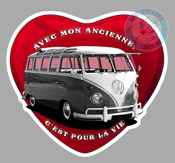 COMBI VW VOLKSWAGEN TOUCH VINTAGE HUMOUR AUTOCOLLANT STICKER I LOVE COEUR CD146