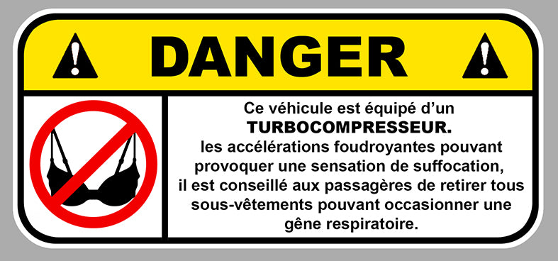 DANGER TURBOCOMPRESSEUR SOUTIEN GORGE FUN AUTOCOLLANT STICKER 12cmX5,5cm DA167