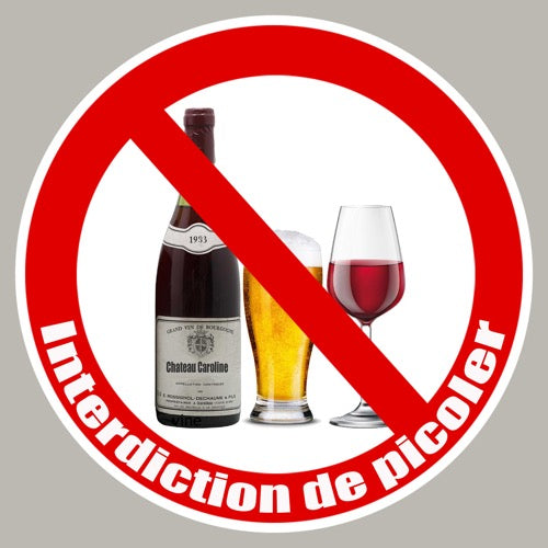 AUTOCOLLANT INTERDIT DE BOIRE INTERDICTION DE PICOLER BOISSON BOIRE STICKER HUMOUR IZ007