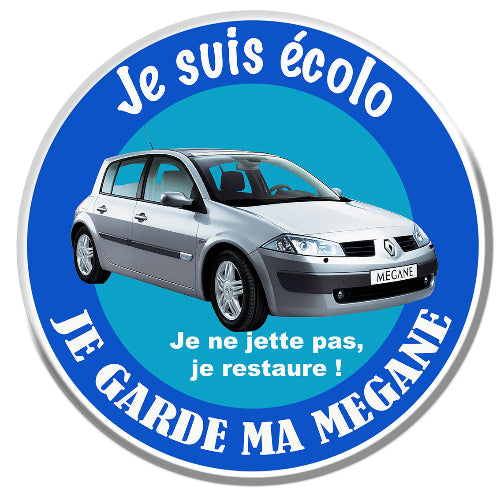 STICKER JE SUIS ECOLO JE GARDE MA MEGANE RENAULT REPARE NE PAS JETER HUMOUR EZ090