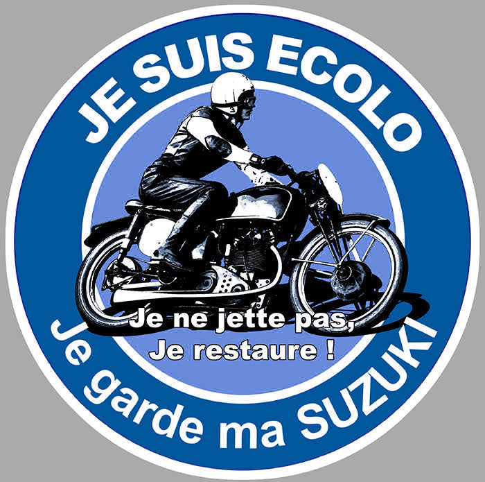 STICKER JE SUIS ECOLO JE GARDE MA SUZUKI REPARE NE PAS JETER HUMOUR EA153