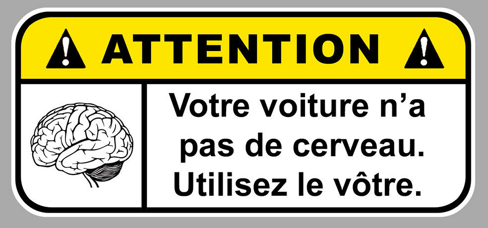 STICKER ATTENTION DANGER AUTO SANS CERVEAU DROLE AUTOCOLLANT AA195