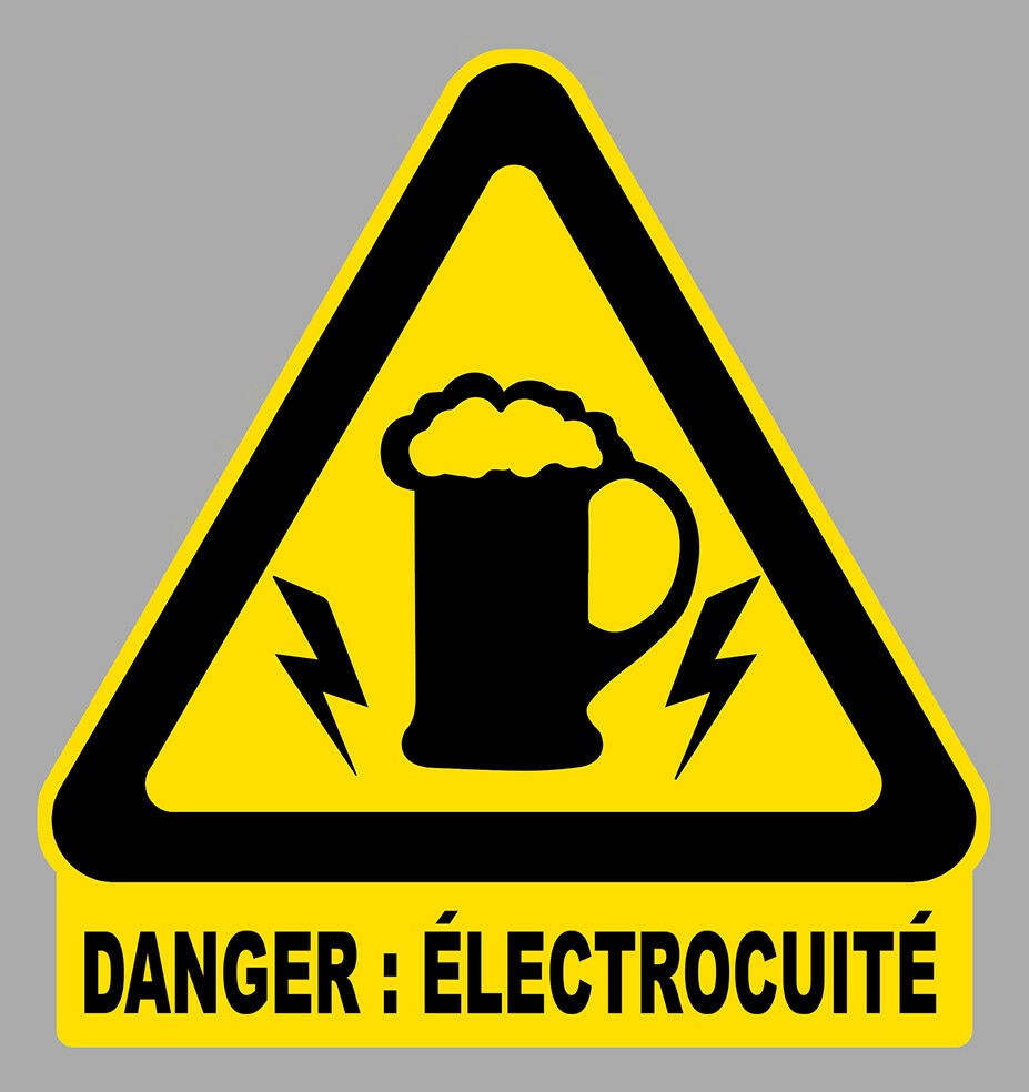 STICKER ATTENTION DANGER CUITE ELECTROCUTION BIERE AUTO DROLE HUMOUR DA187