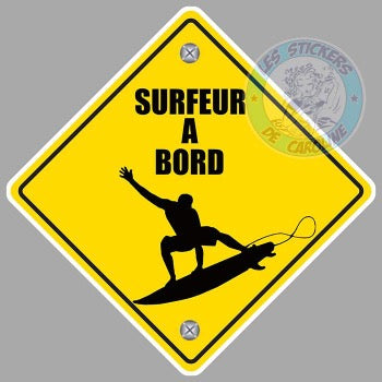 AUTOCOLLANT SURF SURFER SURFEUR A BORD FUNNY HUMOUR STICKER SD172