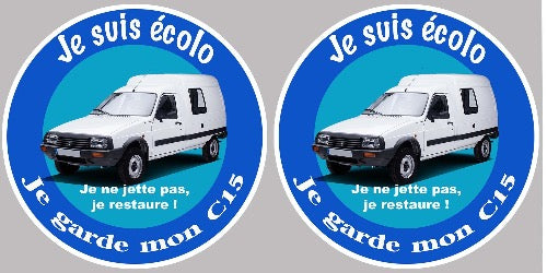 2 x STICKER JE SUIS ECOLO JE GARDE MON UTILITAIRE CITROEN C15 EZ051