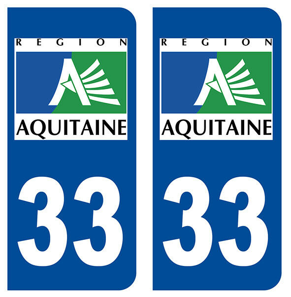 2 IMMATRICULATION 33 LA GIRONDE REGION AQUITAINE DEPARTEMENT AUTOCOLLANT STICKER