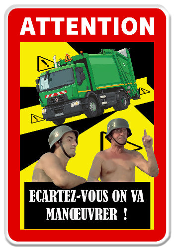 ATTENTION ON VA MANOEUVRER CAMION POUBELLE HUMOUR AUTOCOLLANT STICKER MZ074