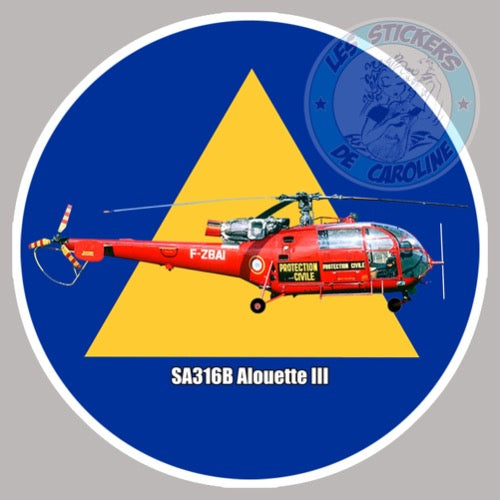 HELICOPTERE ALOUETTE 3 PROTECTION CIVILE SECURITE AUTOCOLLANT STICKER PZ028