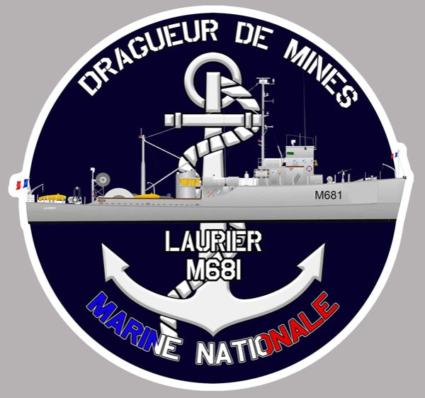 AUTOCOLLANT ARMEE MARINE NATIONALE DRAGUEUR COTIER DE MINES LAURIER M681 DZ007