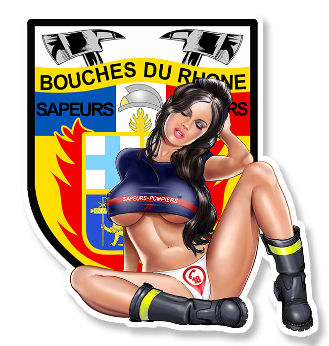 STICKER PINUP SAPEURS POMPIERS DU BOUCHE DU RHONE POMPIER DEPARTEMENT 13 AUTOCOLLANT PF132