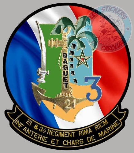 STICKER 21è et 3é régiment RIMA RICM d'infanterie et chars de marine daguet AUTOCOLLANT RZ012