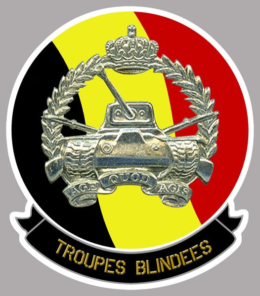 STICKER ARMEE BELGE INSIGNE TROUPES BLINDEES MILITAIRE BELGIQUE BELGIUM TZ010