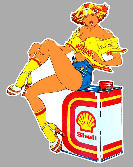 STICKER PINUP PIN UP SHELL GASOLINE CARBURANT GARAGE ESSENCE SD048