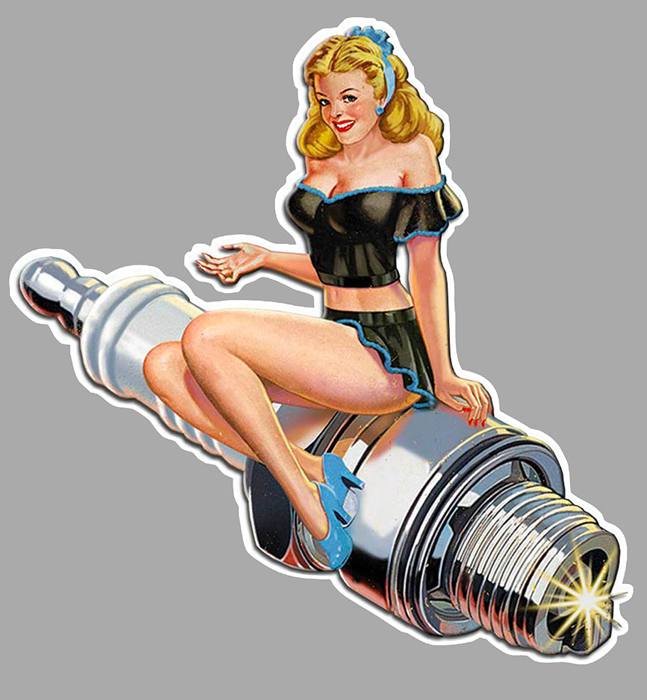 PINUP BOUGIE SPARK PLUG HOT ROD AUTOCOLLANT STICKER AUTO PC062