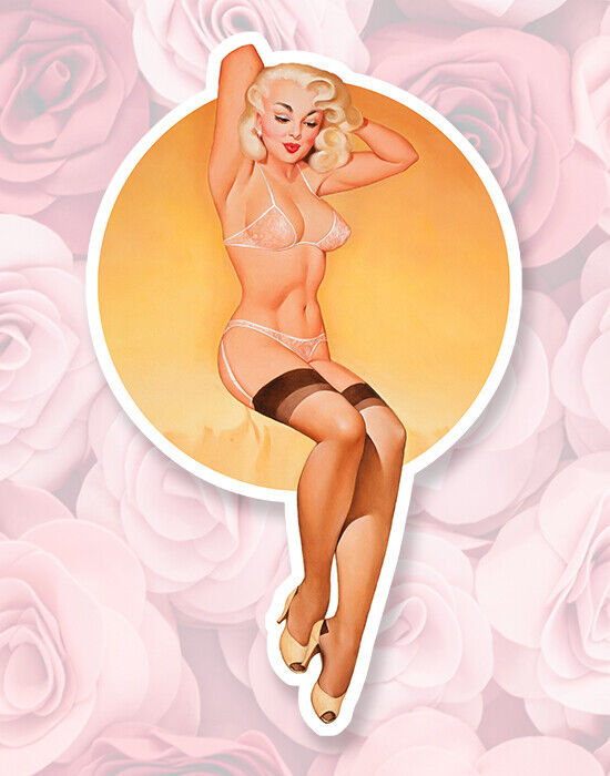 PINUP BLONDE VINTAGE DESSOUS SEXY AUTOCOLLANT STICKER PF148