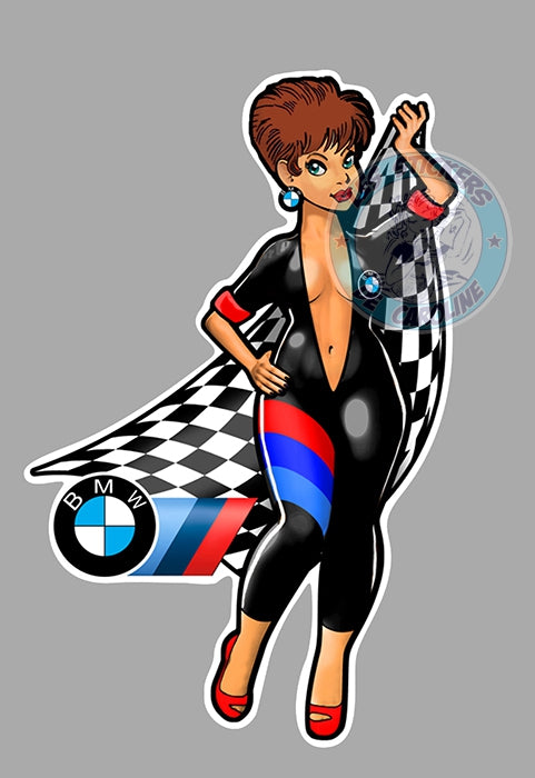 STICKER GERMANY PINUP COTE DROIT AUTOCOLLANT BMW ALLEMAND MISS DAMIERS FLAG GIRL BC008