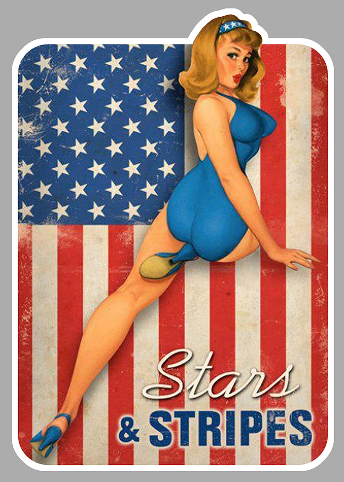 STICKER PINUP BLONDE RETRO USA STARS & STRIPES AUTOCOLLANT PIN UP GIRL HOT ROD VINTAGE TRUCK MOTO PA045