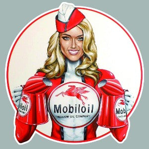 STICKER PINUP PIN UP MOBIL COTE DROIT GASOLINE CARBURANT GARAGE ESSENCE HUILE EXXONMOBIL MC019