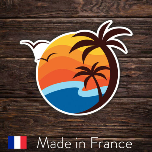 PLAGE PALMIER VACANCE MER SOLEIL VOYAGE TROPIQUE AUTOCOLLANT STICKER FPS101
