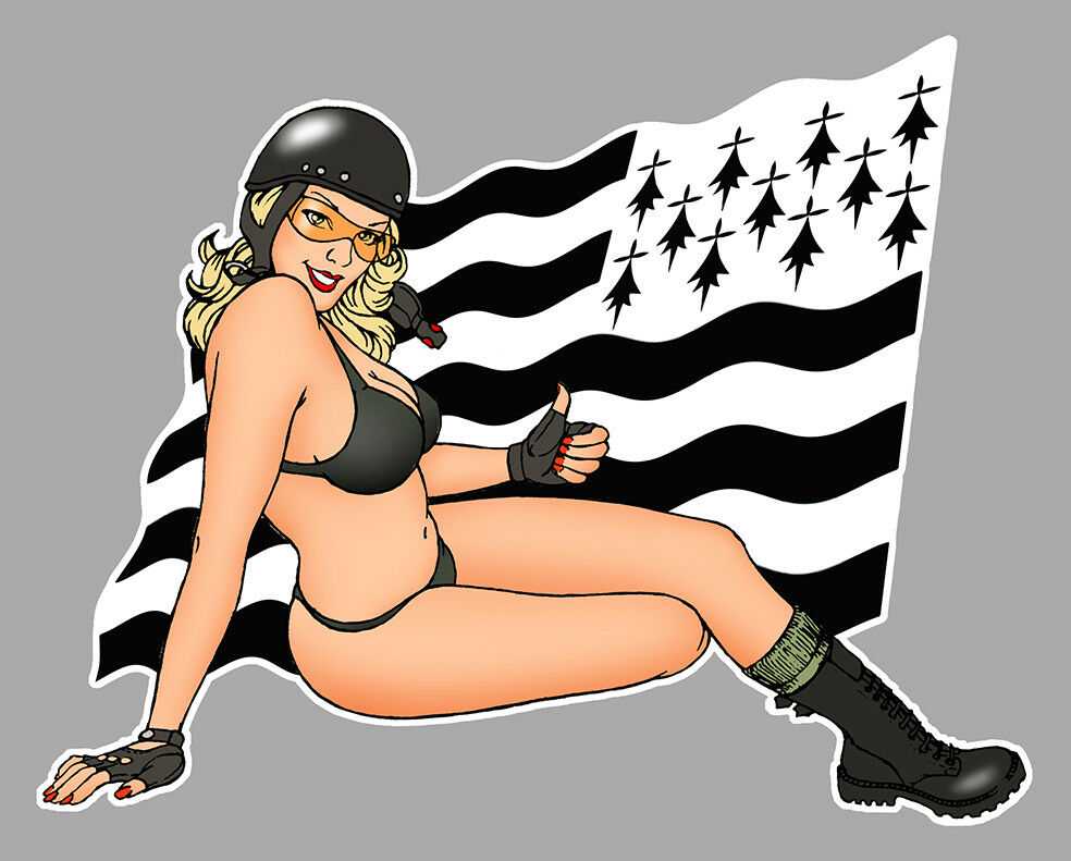 STICKER BREIZH BRETAGNE PINUP AUTOCOLLANT MOTO AUTO DRAPEAU SEXY GIRL PD081