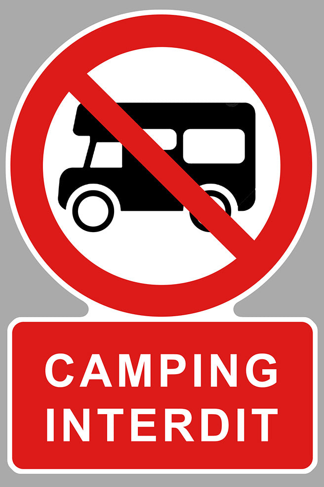 AUTOCOLLANT CAMPING INTERDIT CAMPING CAR STOP PANNEAU STICKER CAM219
