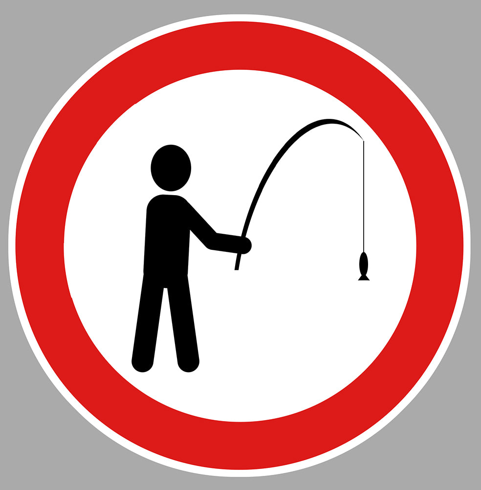 AUTOCOLLANT PECHE INTERDITE CAMPING STOP PANNEAU STICKER CAM238