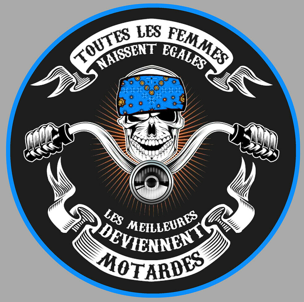 STICKER MOTARDE TETE DE MORT BIKER HARLEY FEMME EGALE AUTOCOLLANT MOTO MC016
