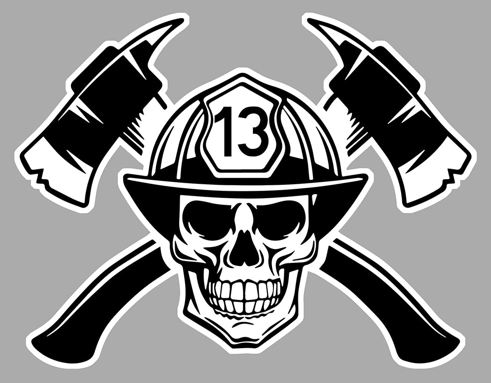PSTICKER POMPIER USA FIRE SKULL CASERNE 13 TETE DE MORT PD168