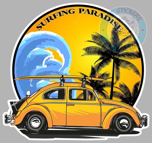 STICKER SURF SURFING PARADISE SPORT VINTAGE VAGUE COX COCCINELLE VW AUTOCOLLANT SZ010