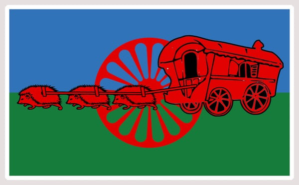 DRAPEAU ROULOTTE HERISSON NIGLO GENS DU VOYAGE DZ009