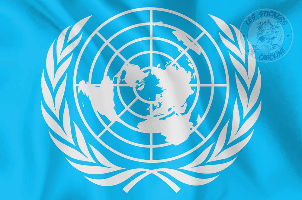 STICKER DRAPEAU DES NATIONS UNIES AUTOCOLLANT ONU AVEC EFFET PLISSE OA084