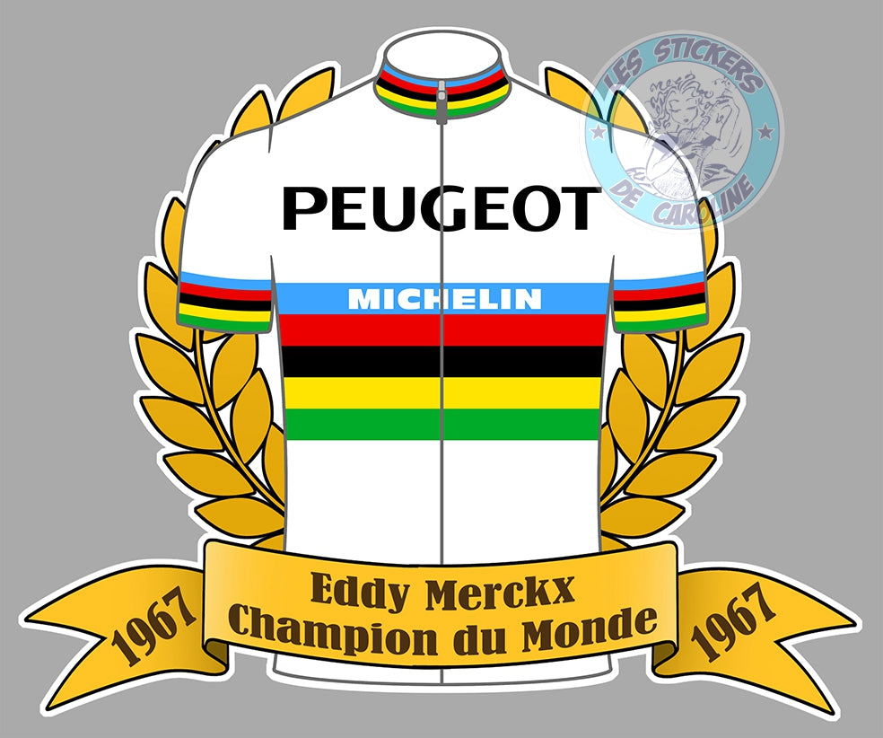 STICKER EDDY MERCKX GRANDE BOUCLE TOUR DE FRANCE CHAMPION DU MONDE VAINQUEUR 1967 VELO LOGO MC024