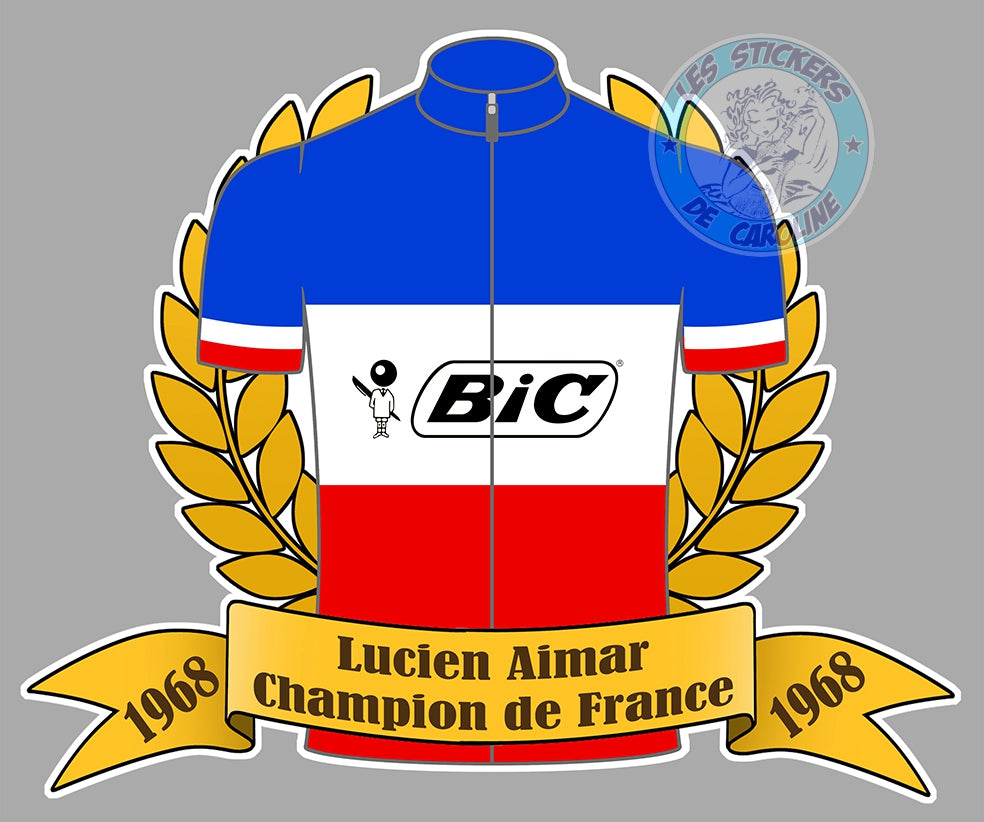 STICKER LUCIEN AIMAR TOUR DE FRANCE CHAMPION DE FRANCE 1968 VAINQUEUR VELO CYCLISME AB084