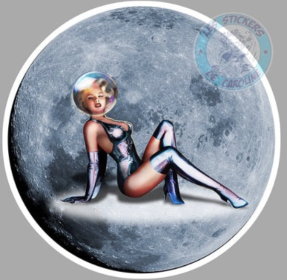 STICKER PINUP LUNE MOON COSMOS ESPACE AUTOCOLLANT PIN UP ASTRONAUTE DROIT LB051