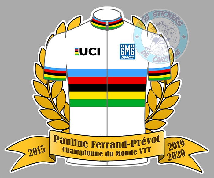Pauline Ferrand-Prevot championne du monde cyclisme 2015 2019 2020 maillot arc en ciel autocollant sticker PF030