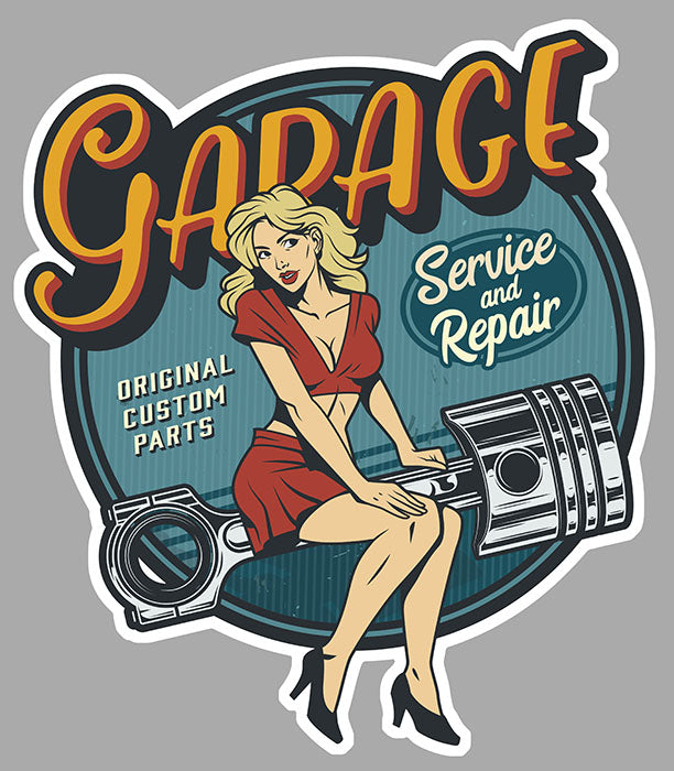 STICKER PIN UP VINTAGE GARAGE BOUGIE HOT ROD AUTOCOLLANT RETRO PISTON AUTO PF033