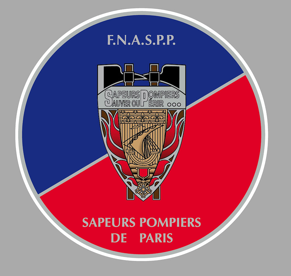 STICKER SAPEURS POMPIERS DE PARIS F.N.A.S.P.P POMPIER AUTOCOLLANT POUR PARE-BRISE INTERIEUR Diametre 7cm PD165